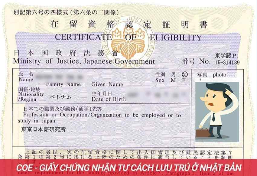 - COE (Certificate of Eligibility) là giấy chứng nhận tư cách lưu trú, được cấp bởi chính phủ Nhật Bản xác nhận tình trạng hợp pháp của cá nhân hoặc tổ chức đối với mục đích nhập cư, làm việc hoặc học tập tại Nhật Bản. Trong khi đó, Visa là giấy phép nhập cư, được cấp bởi Đại sứ quán Nhật Bản tại nơi bạn đang sinh sống để cho phép bạn nhập cảnh và lưu trú tại Nhật Bản.