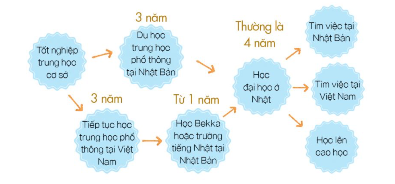 Hầu hết những bạn có nguyện vọng du học đều lựa chọn học đại học ở Nhật sau khi tốt nghiệp phổ thông ở Việt Nam. Tuy nhiên cũng ngày càng có nhiều bạn quyết định đi du học từ bậc trung học phổ thông. Trong thời gian 3 năm học phổ thông, bản thân du học sinh cũng đạt được trình độ tiếng Nhật lưu loát và sát thực tế. Ngoài ra, đến khi tốt nghiệp bạn cũng đã quen với đời sống cũng như thời tiết ở Nhật, và sẵn sàng cho bước kế tiếp là tiến vào đại học. Hơn hết thảy, những kinh nghiệm bạn tiếp thu được sau 7 năm học phổ thông và đại học ở Nhật sẽ là chìa khóa mở rộng cách cửa tương lai của bạn.