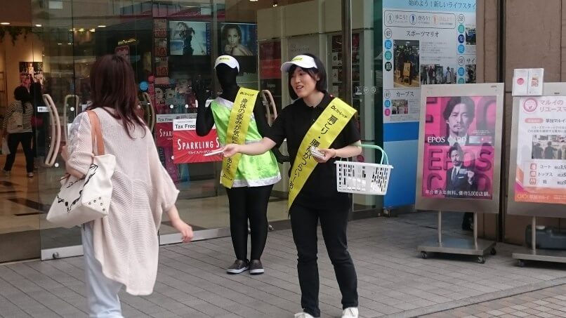 Nếu tới Nhật bạn sẽ dễ dàng bắt gặp những nhân viên tiếp thị đứng phát khăn giấy ở các ngã ba đèn đỏ hoặc ngay trước cửa ga tàu điện