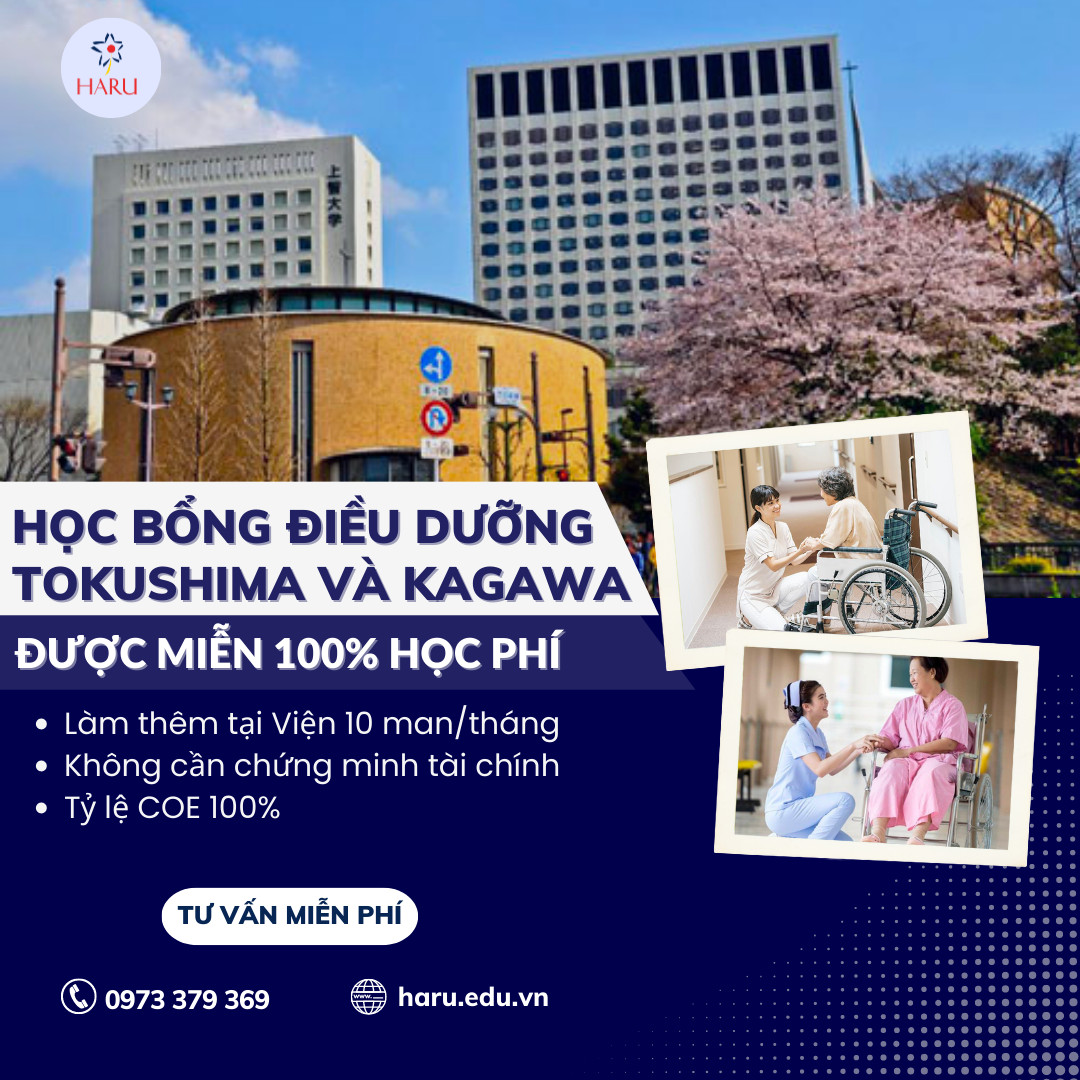 - Đơn vị cấp học bổng: Tập đoàn điều dưỡng tỉnh TOKUSHIMA và KAGAWA