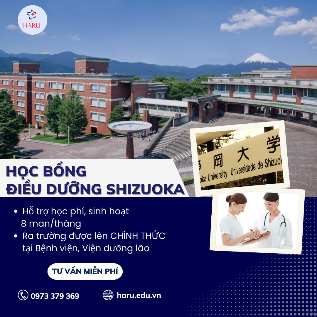 - Đơn vị cấp học bổng: Tập đoàn điều dưỡng tỉnh SHIZUOKA